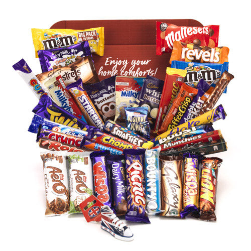 Cadbury Dairy Milk Buttons, Chomp, Crunchie, Curly Wurly, Double Decker, Finger of Fudge, Flake and Freddo Faces M&M Peanut, Maltesers, Munchies, Milkybar Buttons, Milkyway Bar, Picnic, Revels, Rolo Tube, Smarties, Twirl and many more!