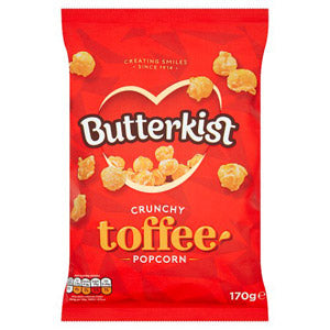 Product information Made to a safely guarded secret recipe, this toffee flavoured popcorn is Butterkists new best ever toffee popcorn. Each bag contains air-popped wholegrain corn kernels, with a delicious
