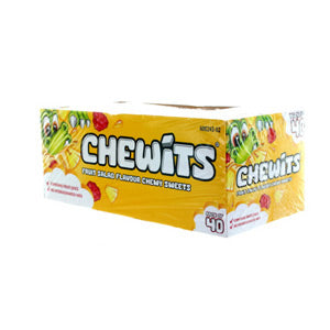 Chewits Fruit Salad is the classic flavour of this much loved sweet. Chewits have been improved over the years and they now contain real fruit juice, are gelatine free and contain no artificial colours.