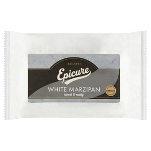 Epicure White Marzipan is the white equivalent of the ever popular golden marzipan – this super sweet almond flavoured confection works perfectly as a topping to pretty much any cake and is a must have on a Christmas cake.