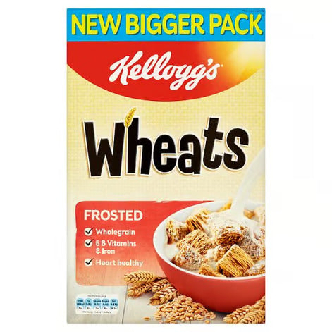 For a hearty start to the day, try Kellogg’s Frosted Wheats. These bite size chunks of wheat cereal are dusted in a light coating of sugar.
