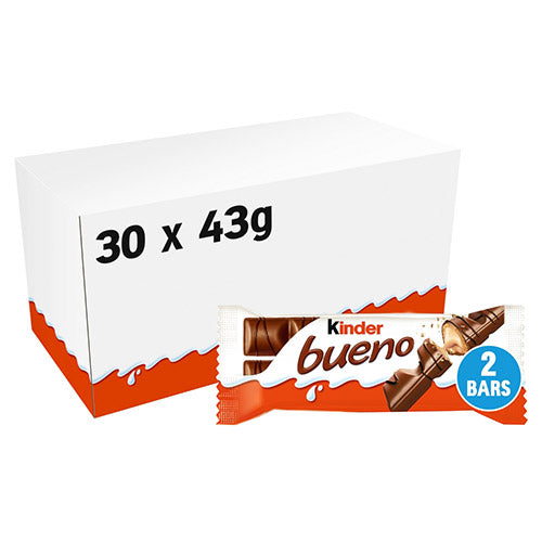 Product information The Kinder Bueno Bar is unrivalled in the world of chocolate – there is nothing quite like it. Each bar contains a creamy hazelnut filling, encased in crispy