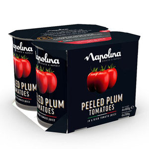 Product information Stock up on richly flavourful and juicy tomatoes with Napolina Plum Tomatoes 4 Pack. It includes four 400g tins of perfectly vine ripened pum tomatoes in a tangy
