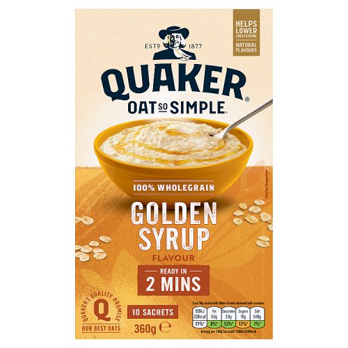 Quaker Oat So Simple Golden Syrup is a healthy, tasty and convenient breakfast cereal blending sweet golden syrup with 100% Quaker rolled oats. It will warm you up in the morning and also keep you going until lunch!