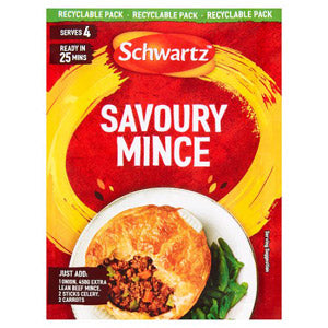 Create a delicious savoury mince dish with this convenient Savoury Mince Mix from Schwartz. The sachet contains a rich blend of onion and black pepper that will really bring out the best in your minced beef.
