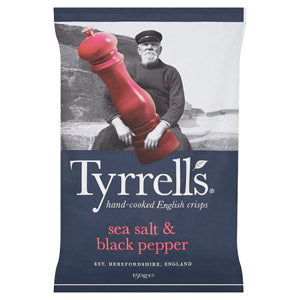 Product information Tyrells Crisps Sea Salt & Pepper are top-quality hand cooked English crisps. These delicious crisps are perfect for enjoying on an evening in front of your favourite movie.