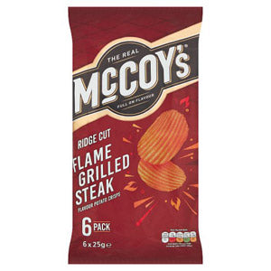 McCoys Flame Grilled Steak crisps are a no-nonsense potato snack that is a favourite across the nation... These delicious, steak-flavoured ridge cut crisps also contain 30% less saturated fat.